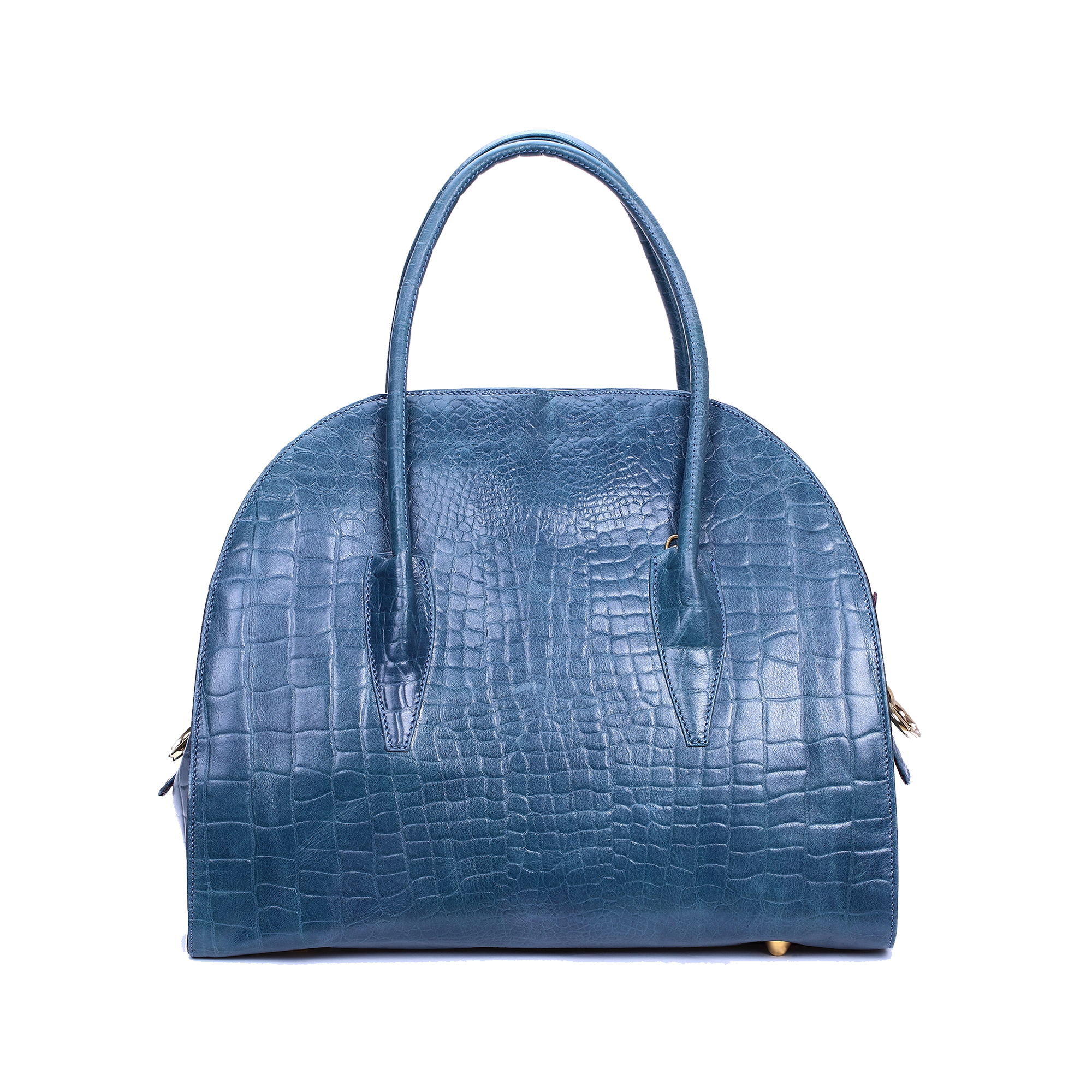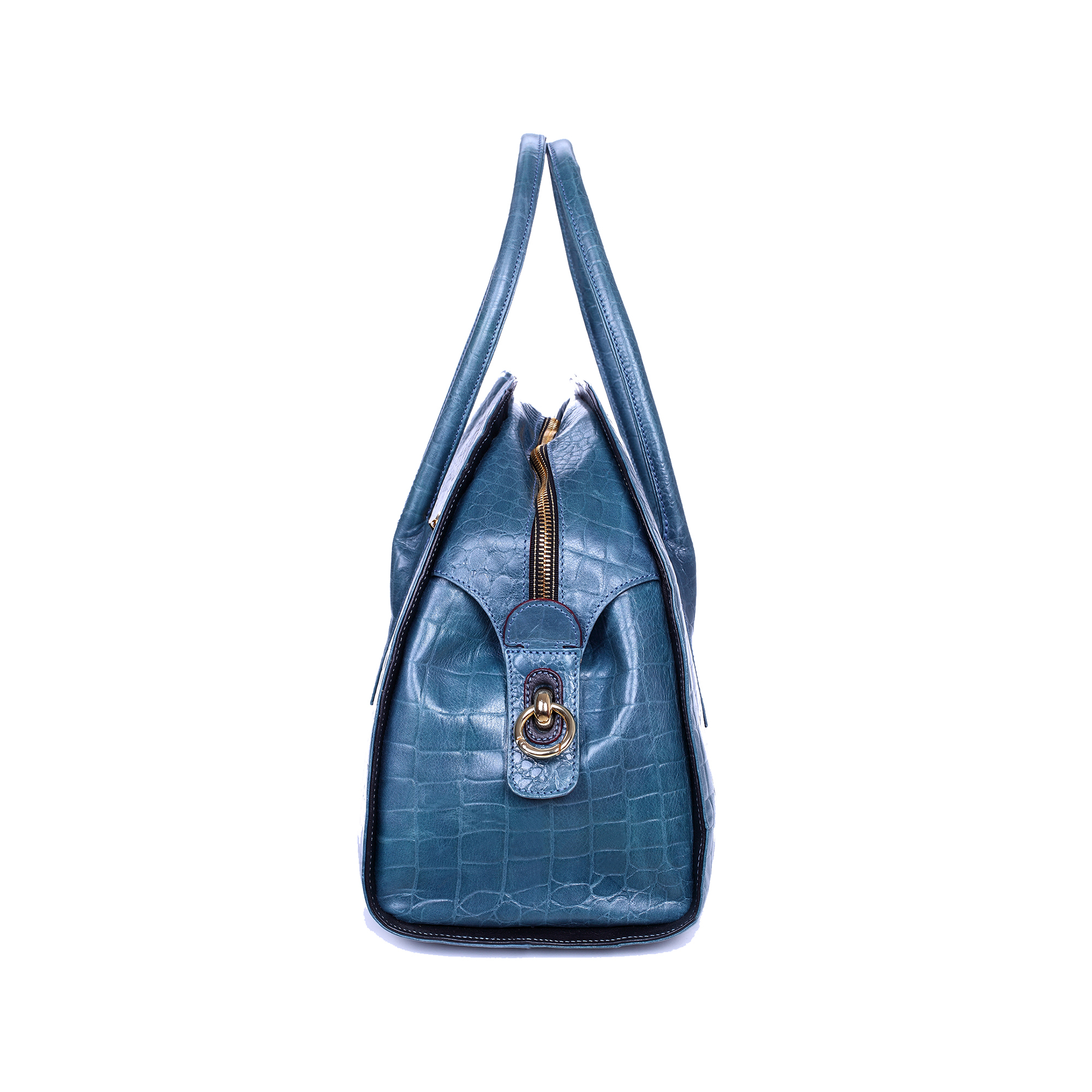意大利进口漂亮手提包-Gover女包蓝色牛皮印花鳄纹女士手提袋