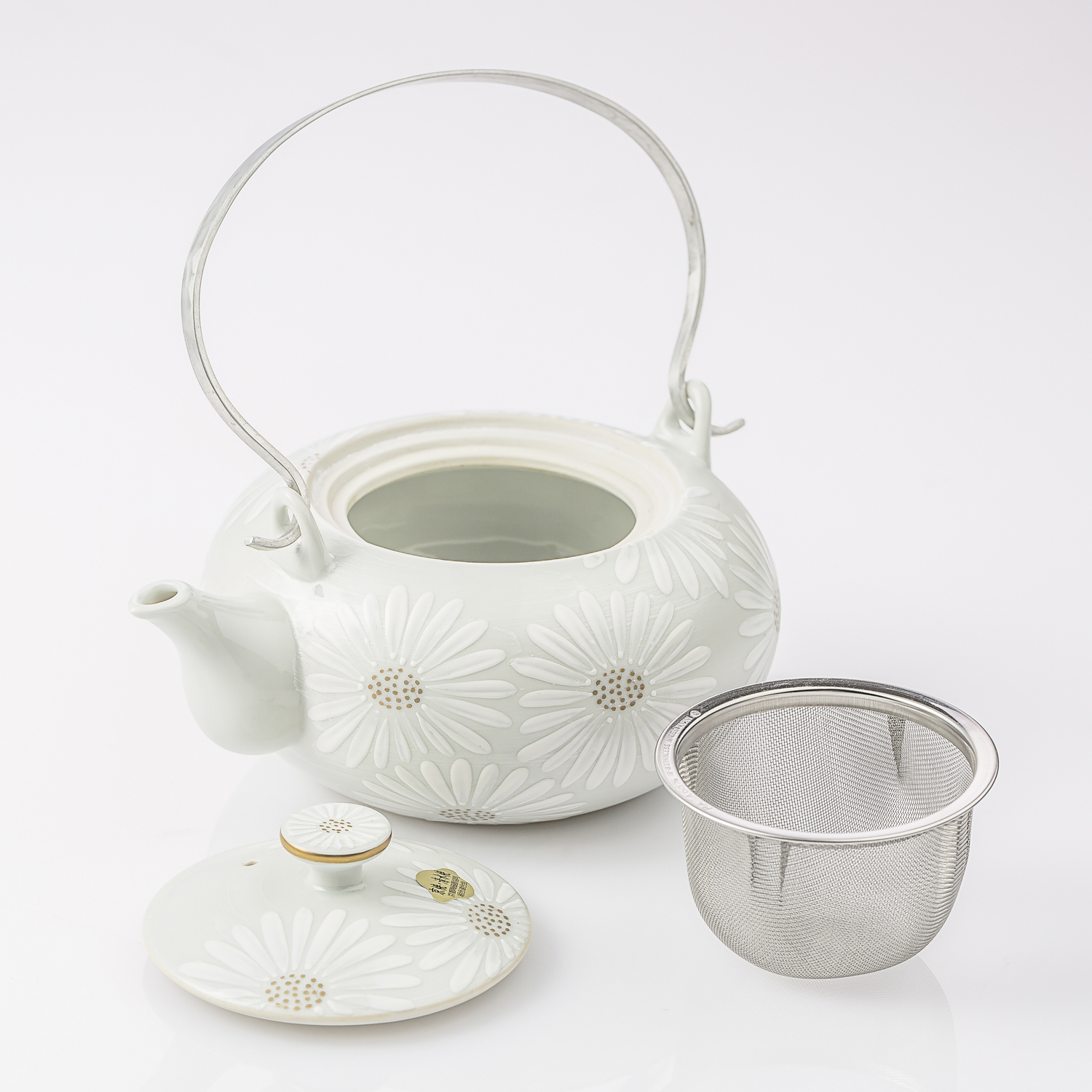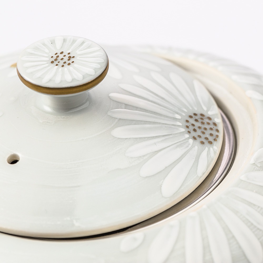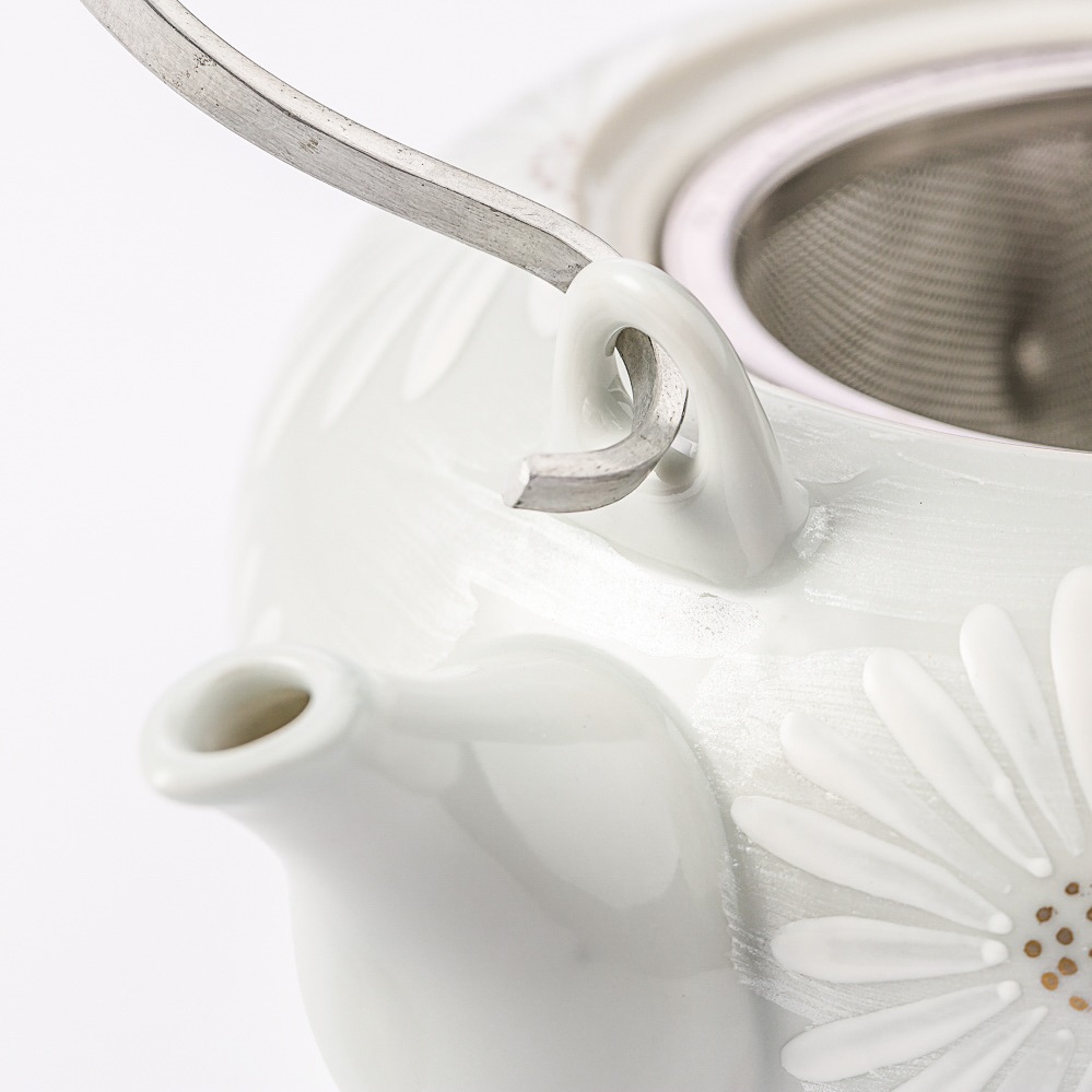 日本进口陶瓷套装茶壶-Kayori纯手工白菊陶瓷茶壶-白色