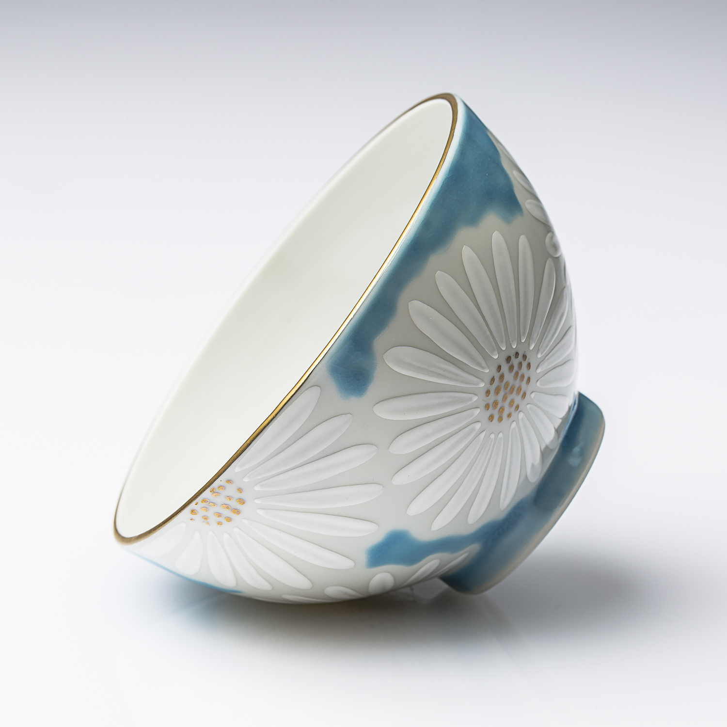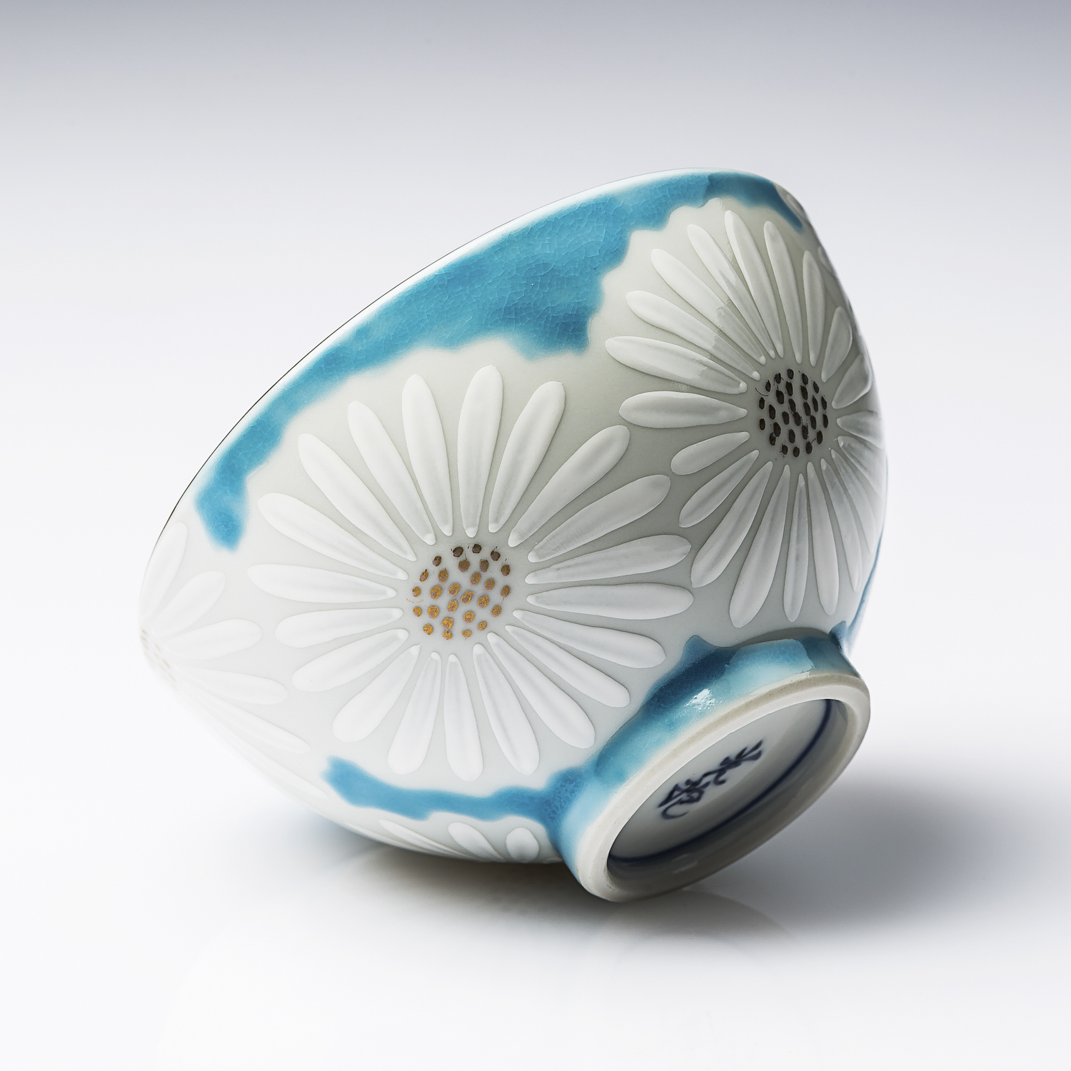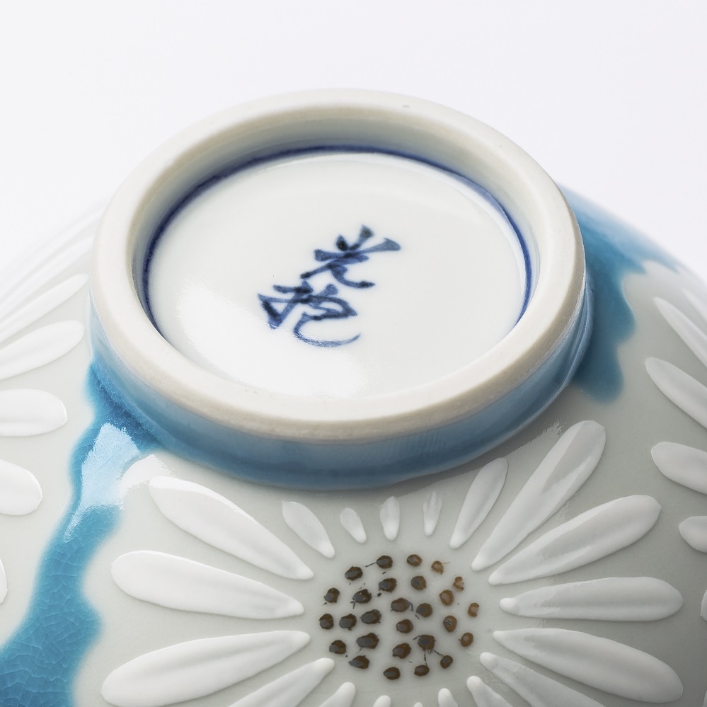 日本进口白色陶瓷杯-Kayori纯手工京烧清水烧白菊陶瓷茶杯-青色