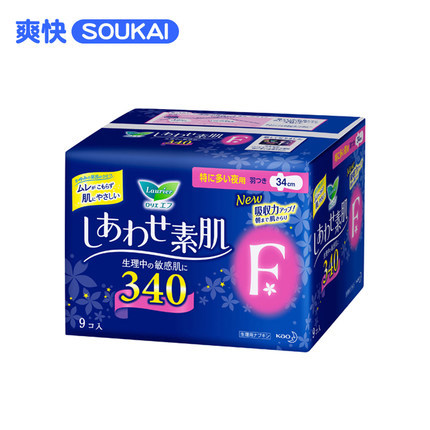 保税区发花王乐而雅F系列棉柔超长夜用无荧光剂进口卫生巾34cm9