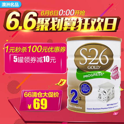 【清仓】新西兰进口惠氏金装2段s26澳洲Wyeth婴幼儿奶粉二段900g