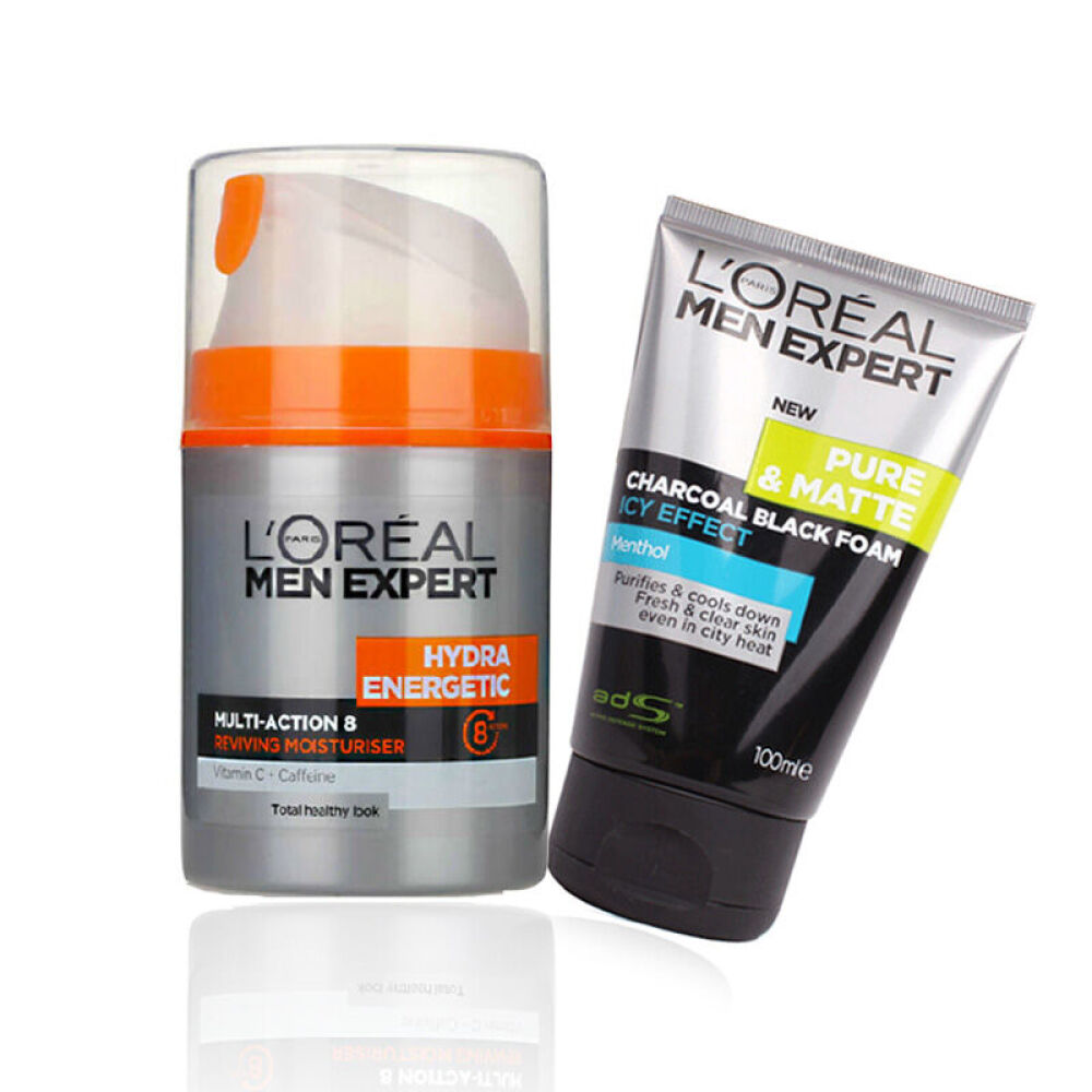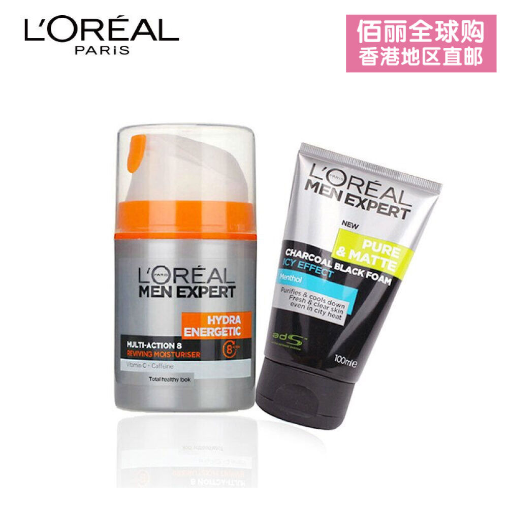 【香港地区直邮】LOREAL欧莱雅男士护肤洁面膏洗面奶控油炭爽冰感洁面乳100ml+劲能醒肤露50ml