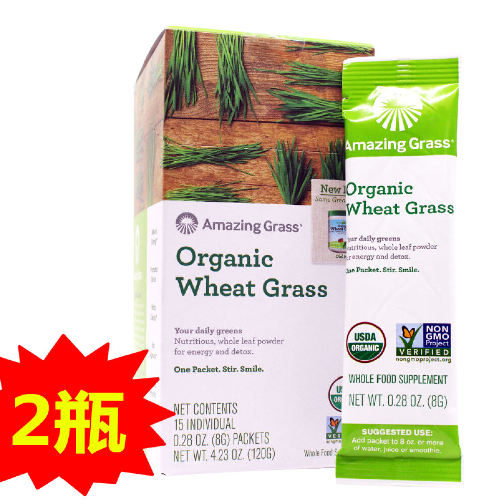 美国进口直邮Amazinggrass小麦草粉排出毒养颜小肚腩养护肠胃改善便秘抗氧化小麦草粉15袋2盒
