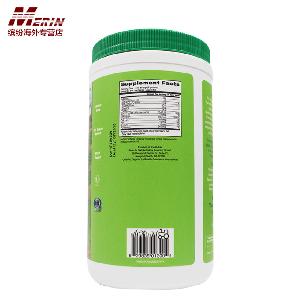 美国AmazingGrass小麦草粉酵素粉大麦若叶青汁排毒清肠通便秘消除小肚腩小麦草480g1瓶