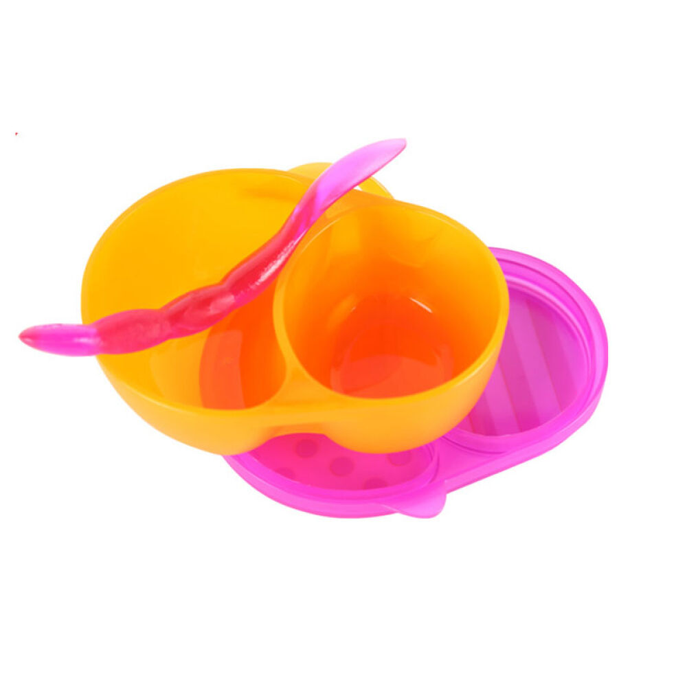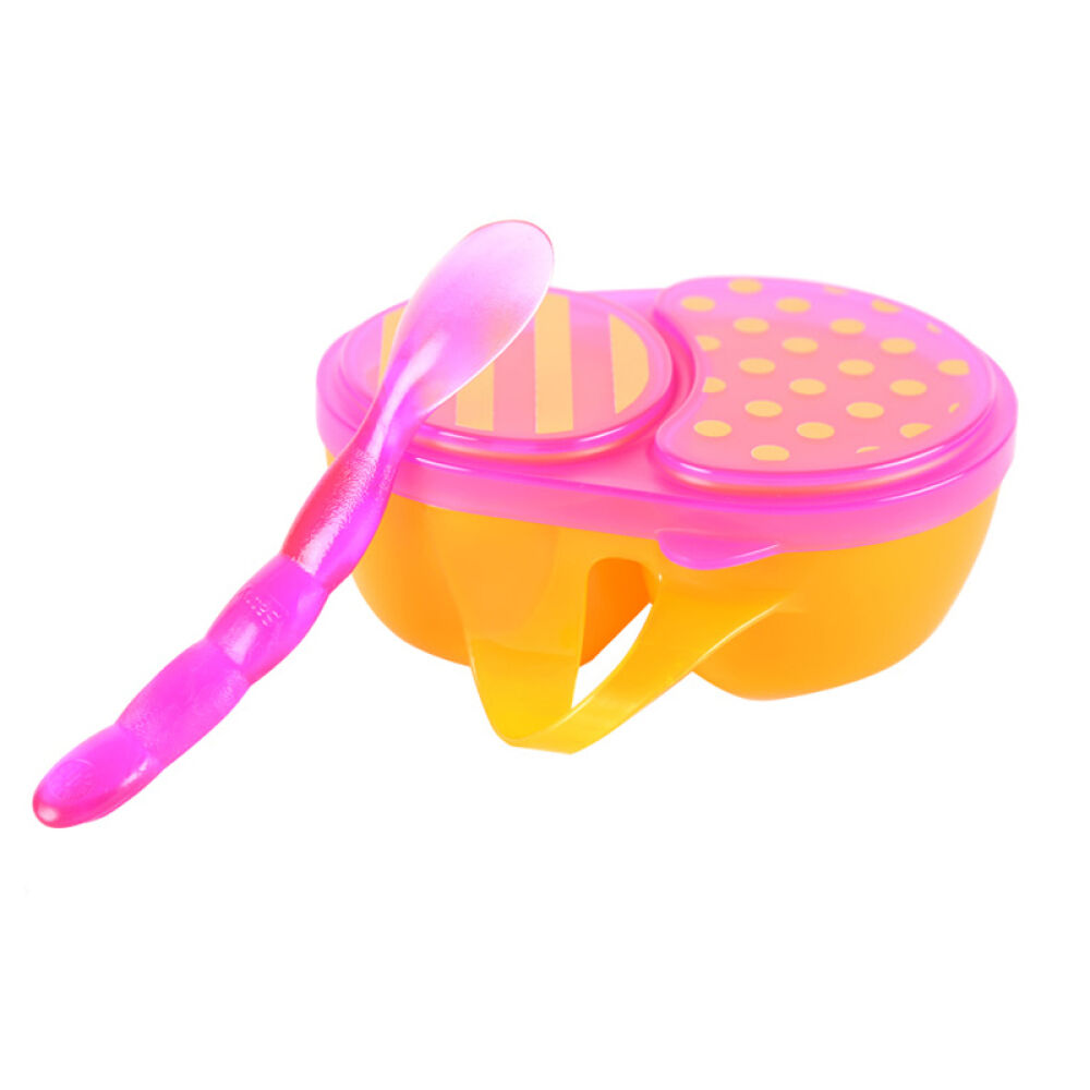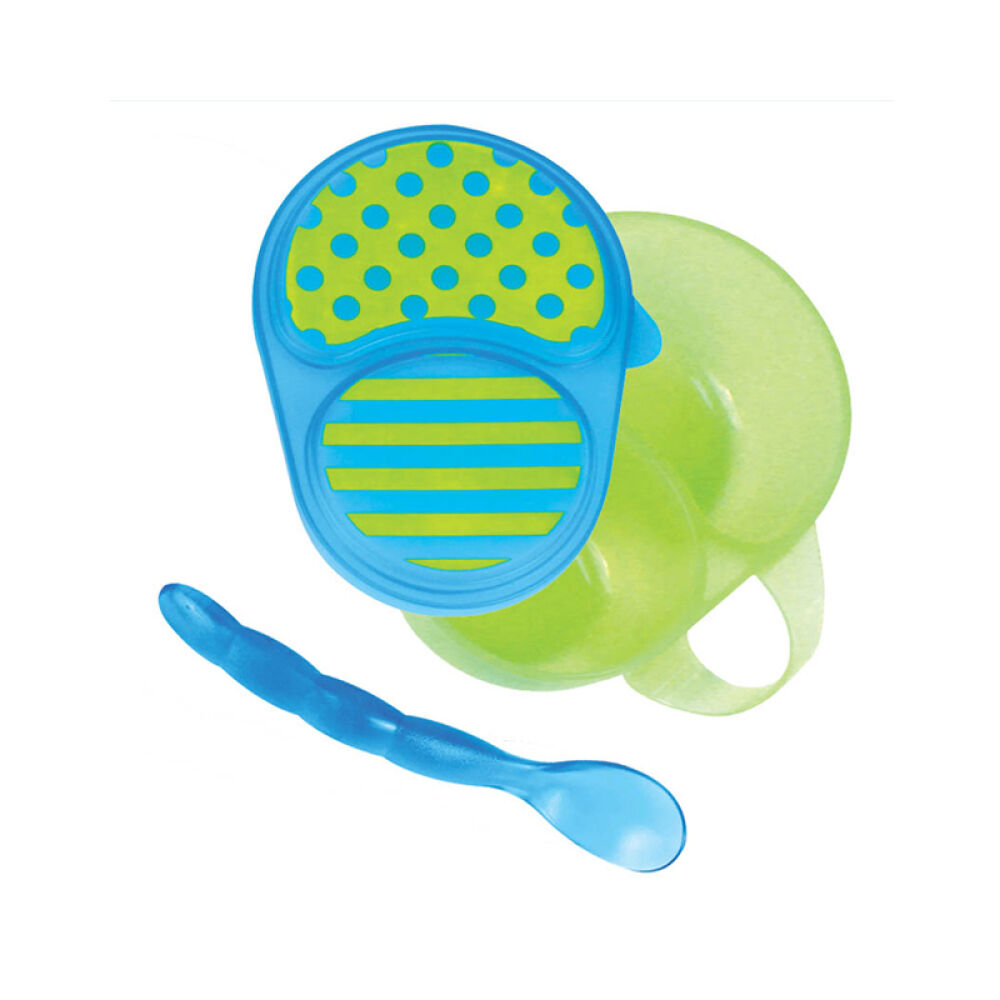 【全球购】进口美国满趣健婴童餐具安全硅胶软勺练习吸盘碗保税区发货带盖分隔碗+硅胶软勺(颜色随机)