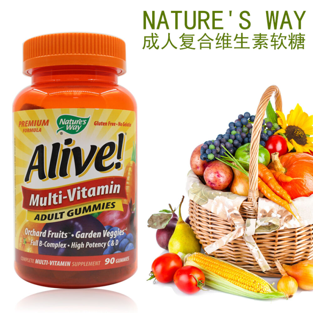 美国直邮Nature'sWay成人复合综合维生素软糖90粒含B族维生素C维生素DVCVD1瓶