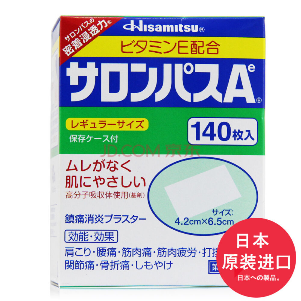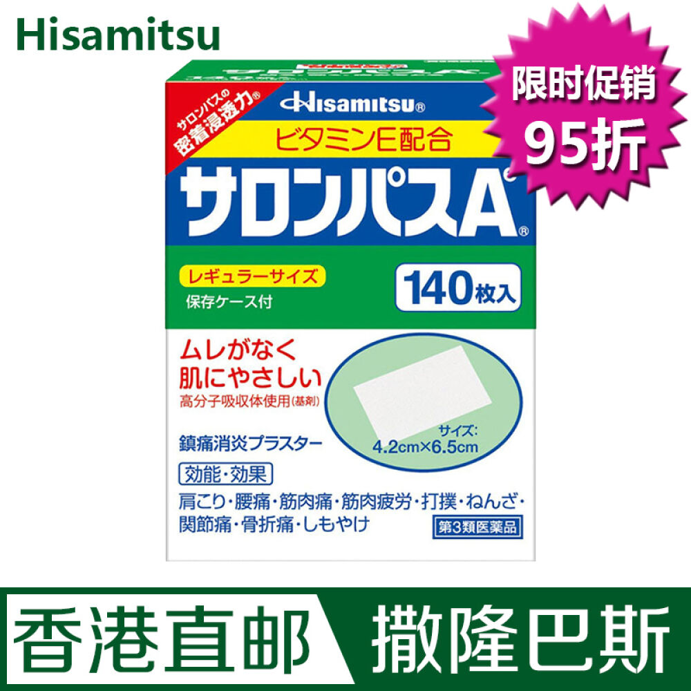 【日本原装进口】SALONPAS撒隆巴斯镇痛貼久光制药膏药贴萨隆巴斯风湿痛肩颈痛腰痛膏药日本原装140片/盒
