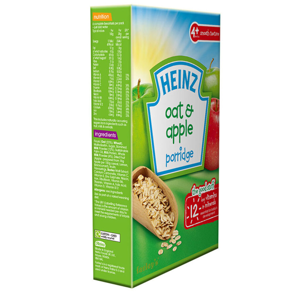 自营亨氏Heinz婴幼儿辅食燕麦苹果米糊4-36个月宝宝125g英国进口