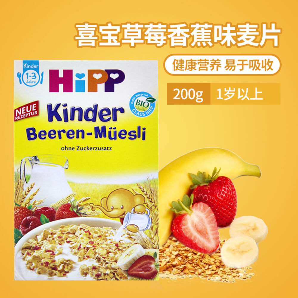 【全球购】德国原装进口喜宝米粉Hipp有机免敏婴儿米糊宝宝营养辅食大米谷物水果米粉草莓香蕉味水果麦片35321岁以上