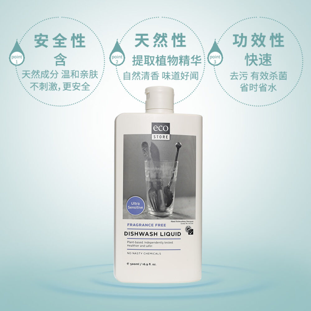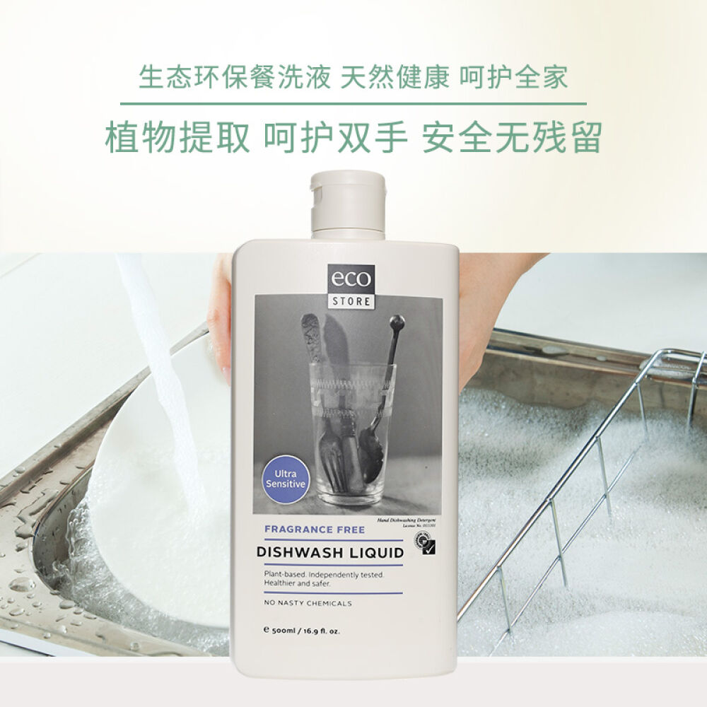 自营宜可诚(ecostore)天然植物护手洗洁精无添加餐具洗涤剂果蔬清洗剂厨房油污清洁剂无香型500ml