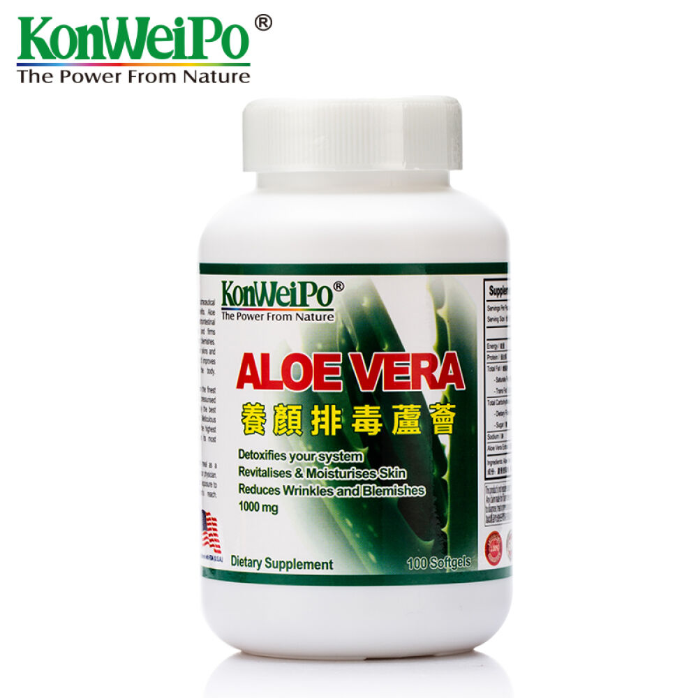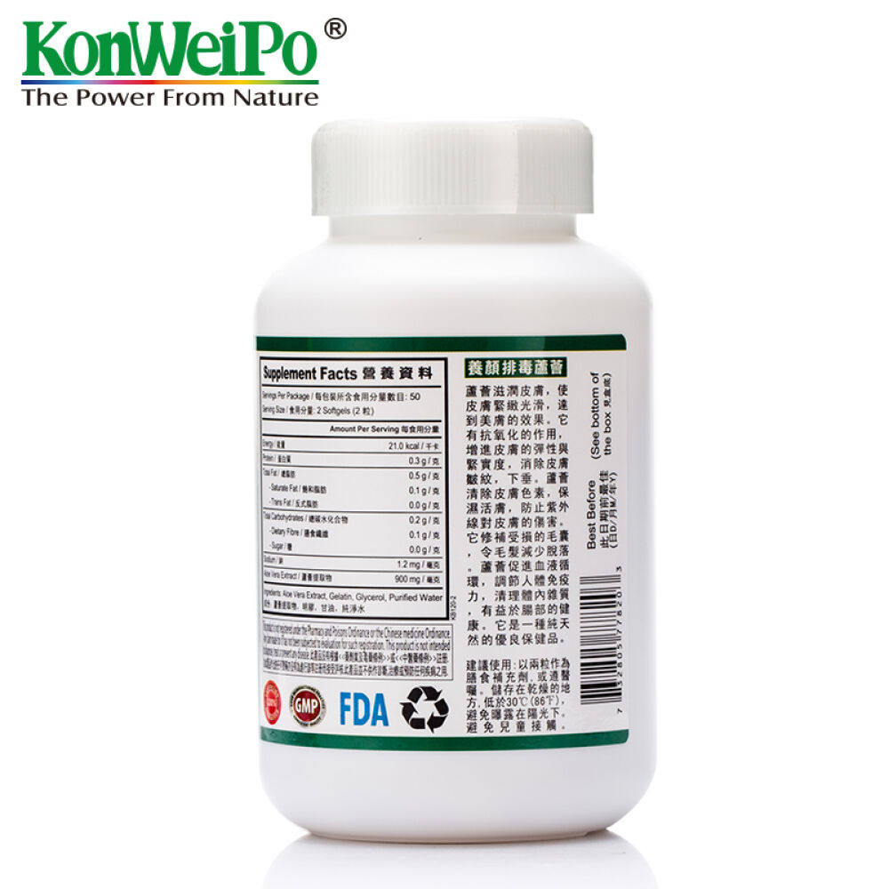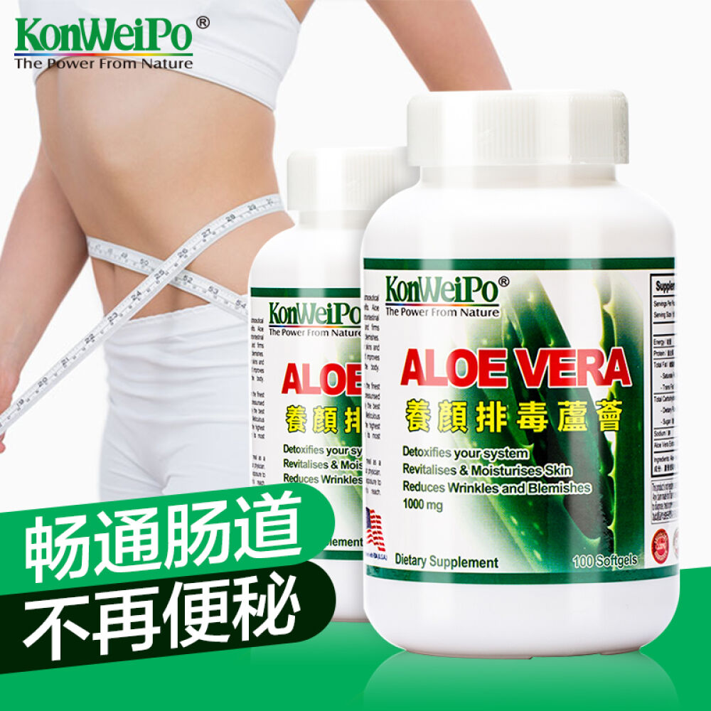 美国康维宝KonWeiPo养颜排毒芦荟软胶囊100粒/瓶改善肠道功能改善便秘2瓶加强装
