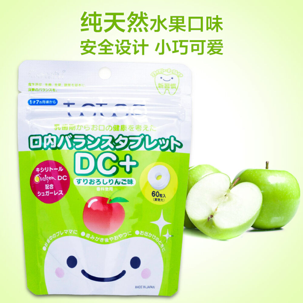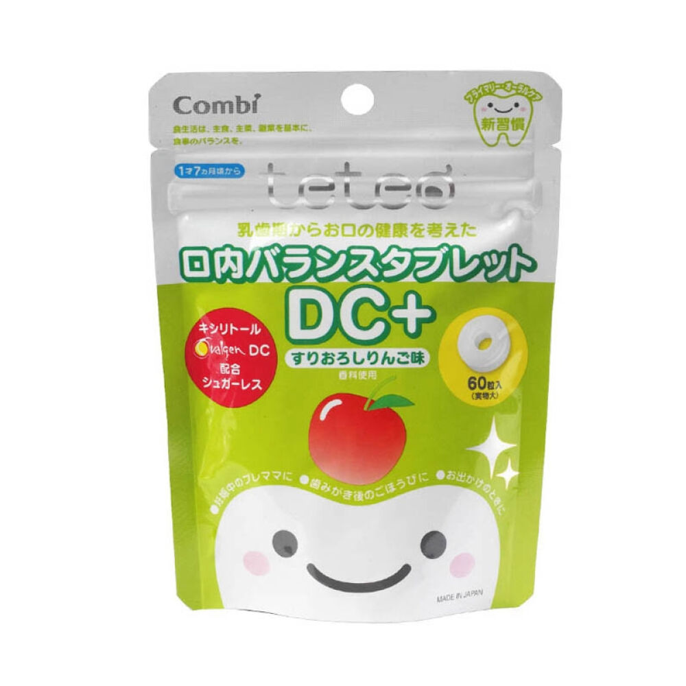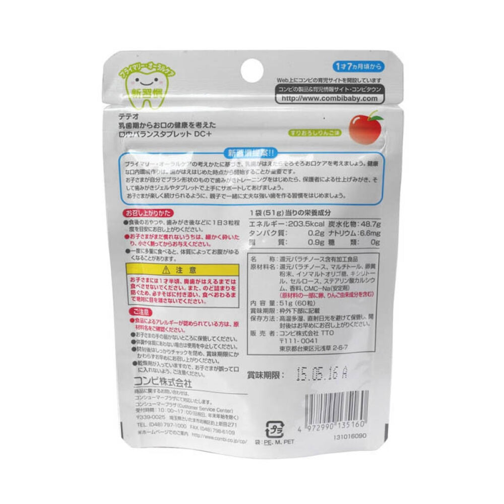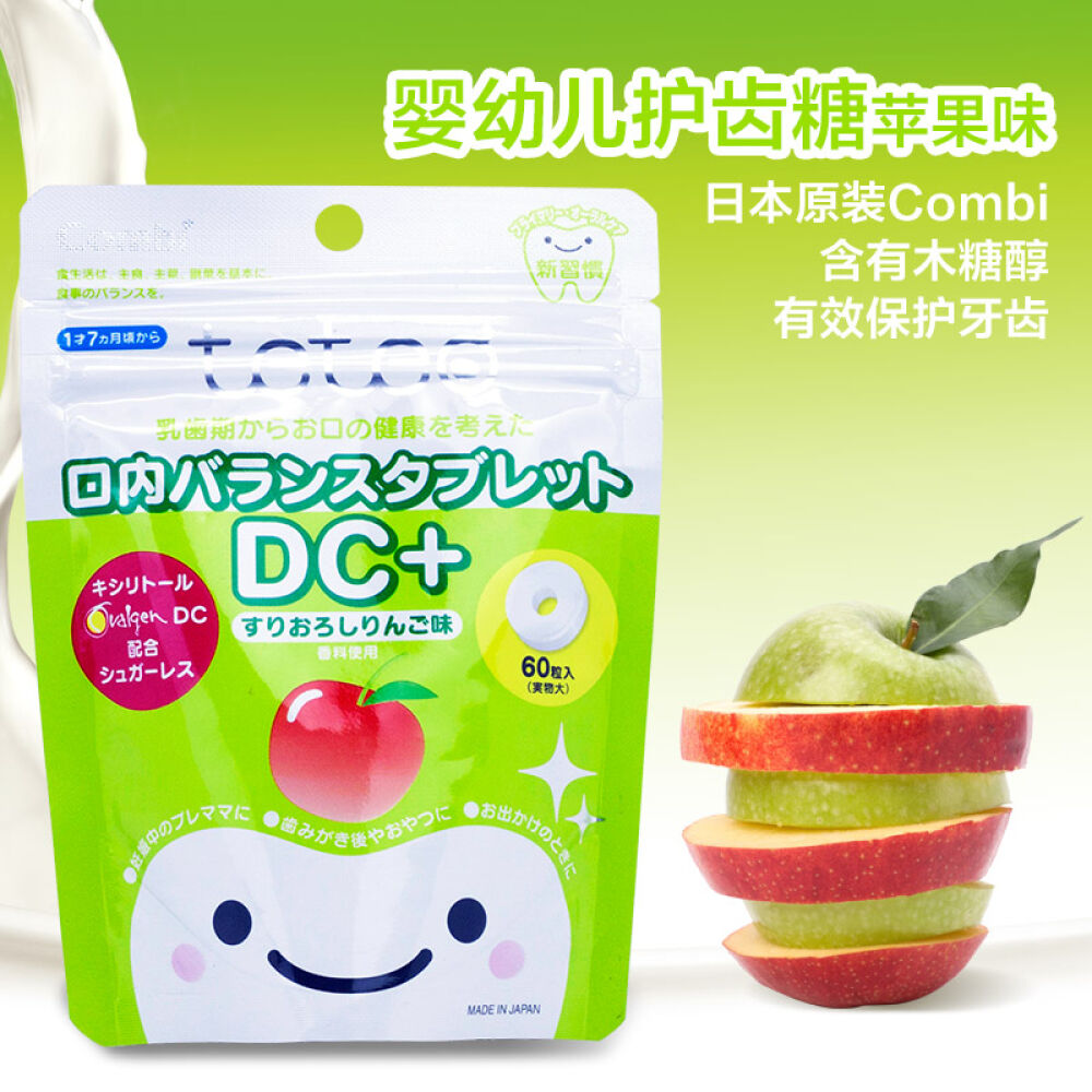 日本进口Combi零食康贝婴幼儿健齿糖/宝宝护齿糖60粒六种口味苹果味
