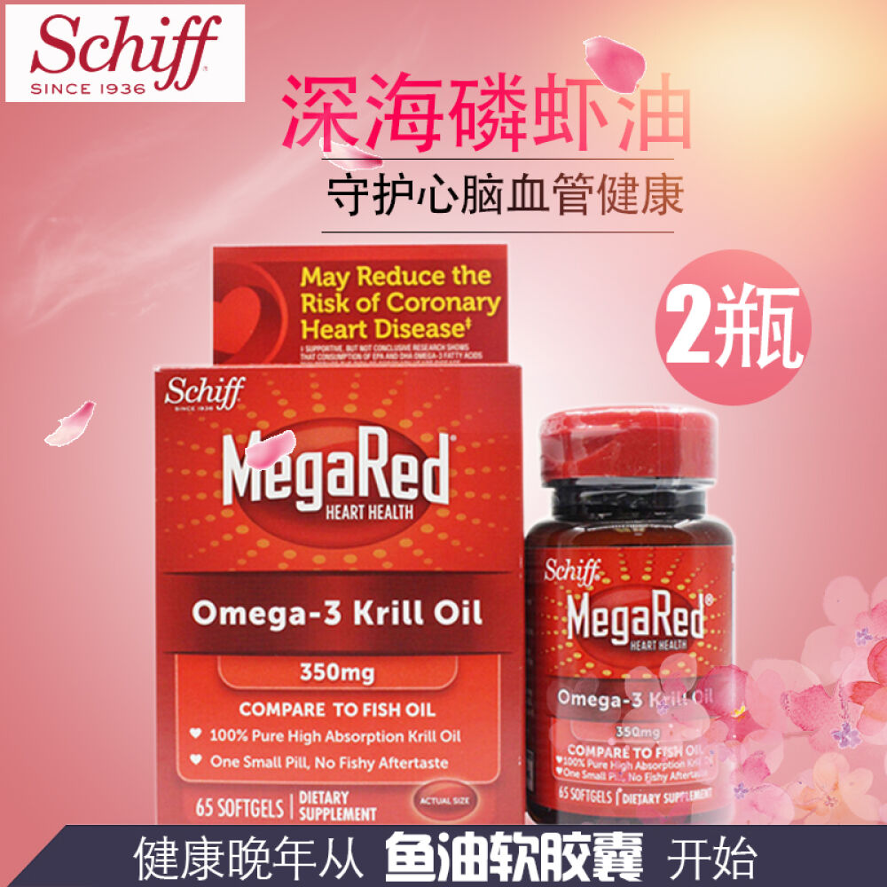 旭福schiffMegaRed磷虾油欧米伽-3虾青素软胶囊350mg65粒2瓶350mg65粒