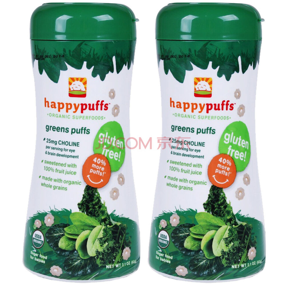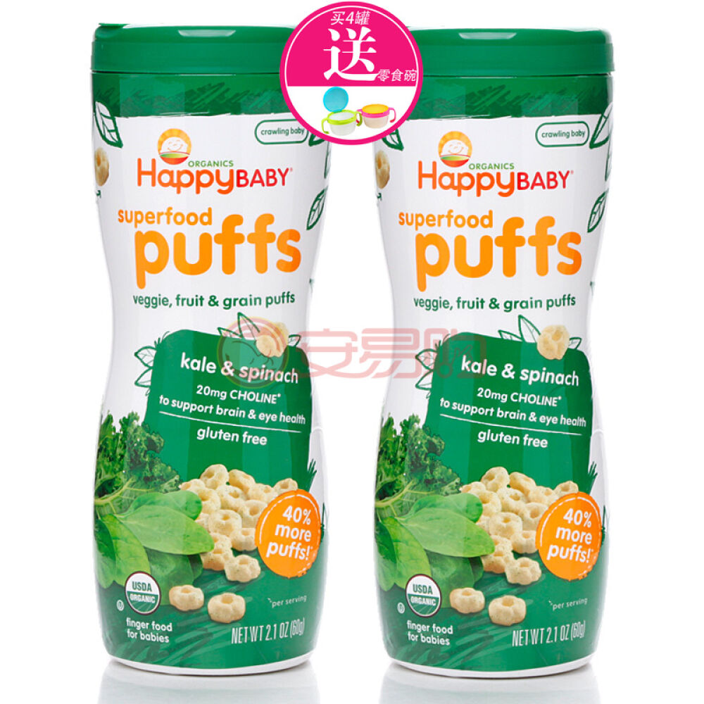 美国原装HappyBaby禧贝全麦水果泡芙麦圈宝宝辅食婴儿零食蔬菜泡芙2罐
