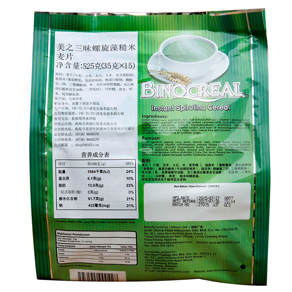 马来西亚进口美之三昧螺旋藻麦片即食糙米燕麦片525g袋装