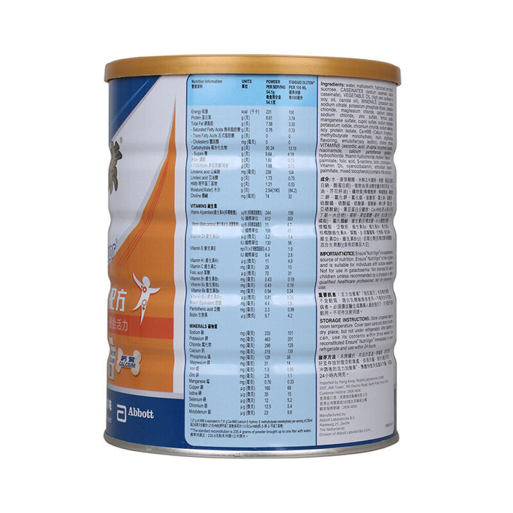 【全球购】港版雅培Abbott活力加营素均衡健肌强身强肌配方营养粉850g呍呢拿味