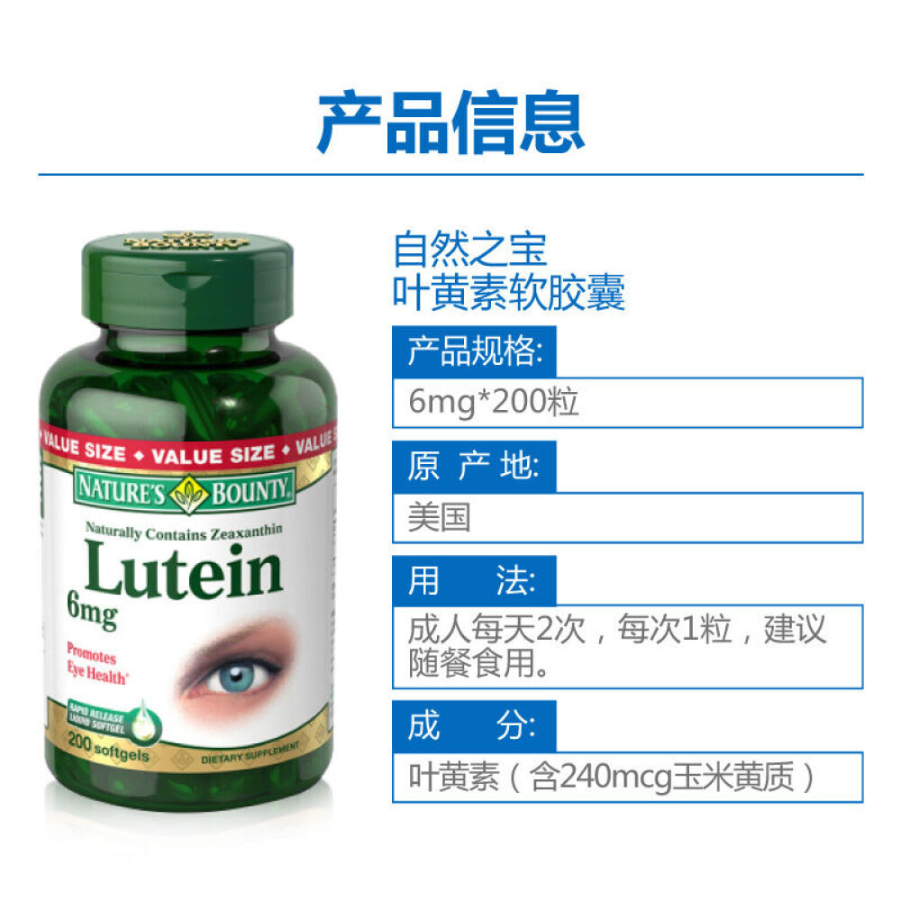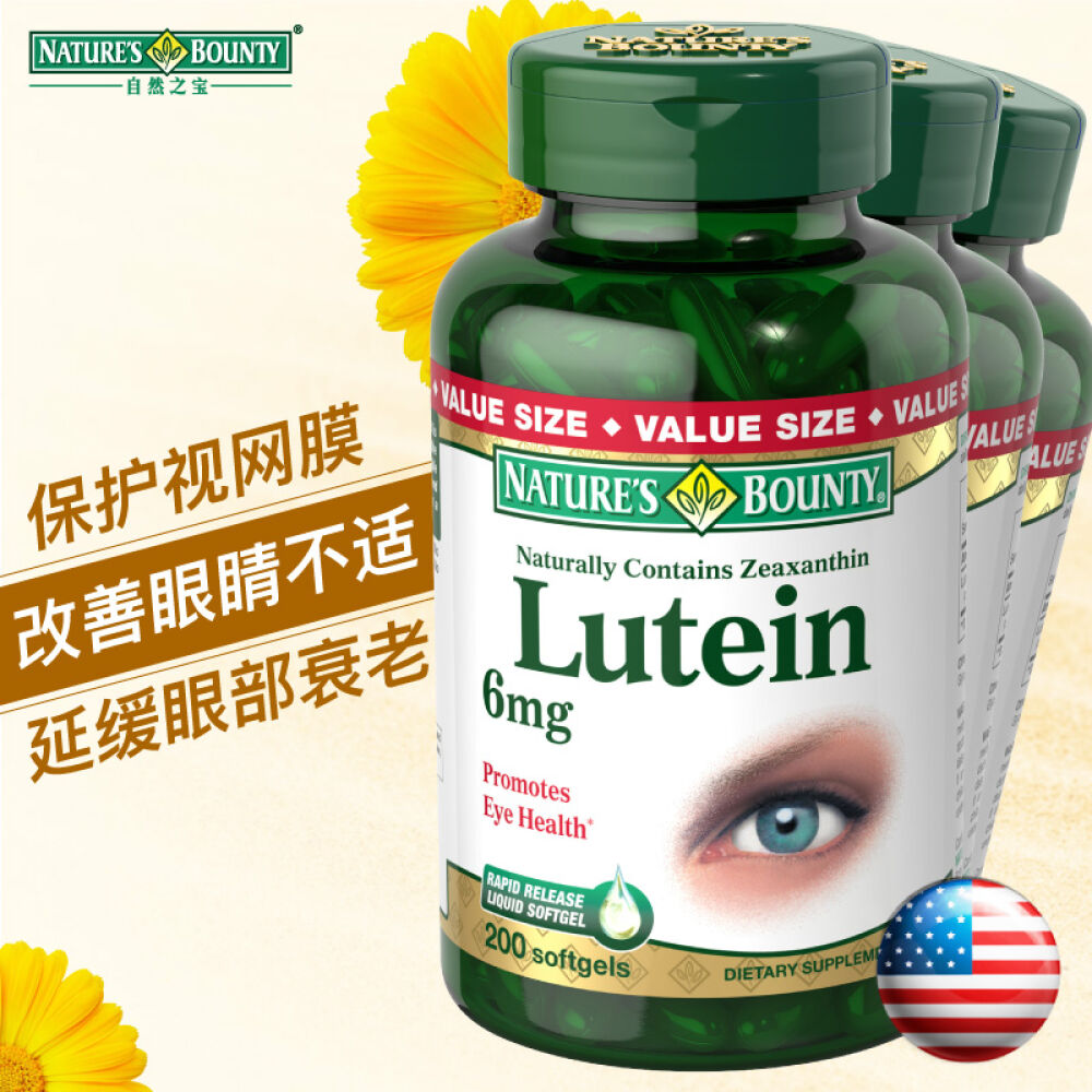 自然之宝叶黄素软胶囊明目护眼美国原装进口lutein缓解视力疲劳6mg/粒200粒3瓶装