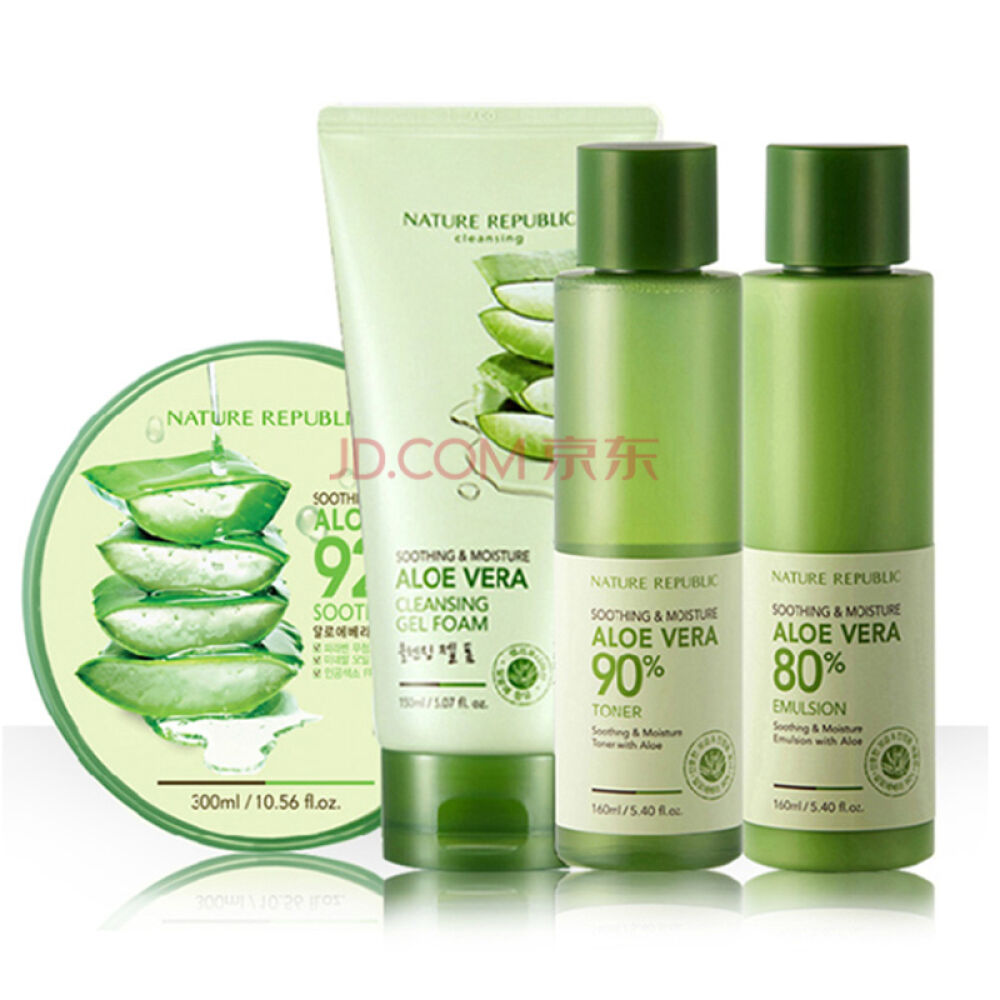 【澳门直邮】韩国自然乐园补水套装芦荟胶乳液爽肤水补水保湿洁面乳4件套正品包