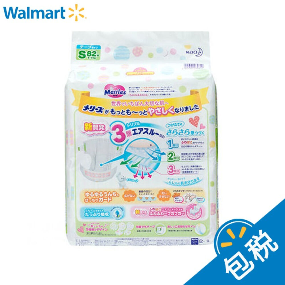 【沃尔玛】花王Merries原版纸尿裤S82三倍透气尿不湿日本进口