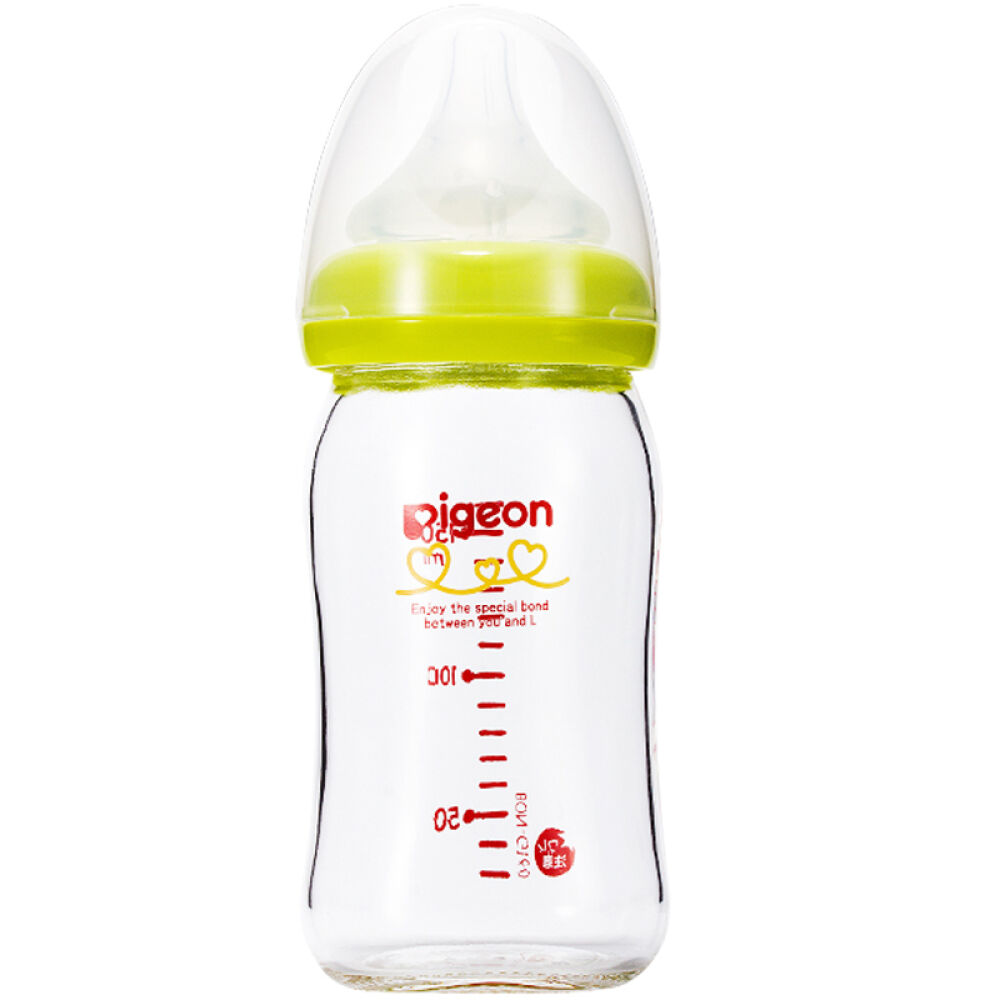 自营贝亲Pigeon仿母乳实感宽口径耐热玻璃奶瓶160ml绿色日本原装进口