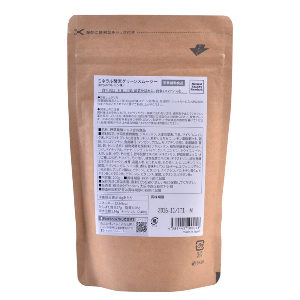 【全球购】日本NaturalHealthyStandard自然健康酵素青汁代餐粉200g蜂蜜柠檬味