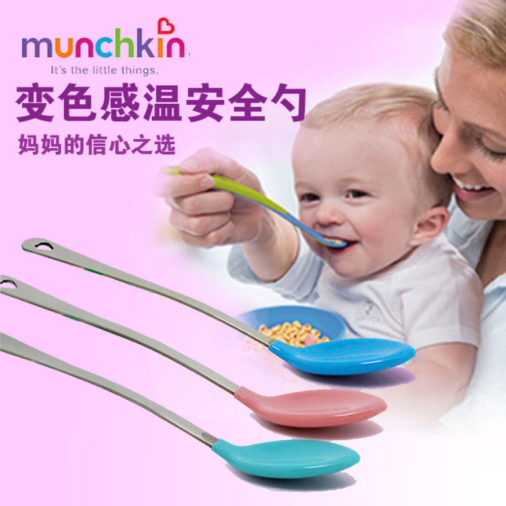 美国直邮munchkin麦肯齐婴儿童感温变色软勺宝宝吃饭辅食软头勺子