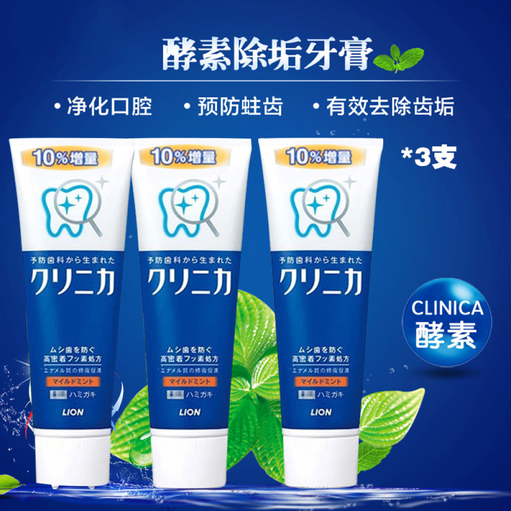 日本原装进口狮王LION酵素美白护齿牙膏婴幼儿水果味牙膏宝宝漱口水多款可选橙色薄荷味*3支