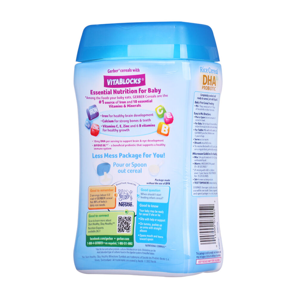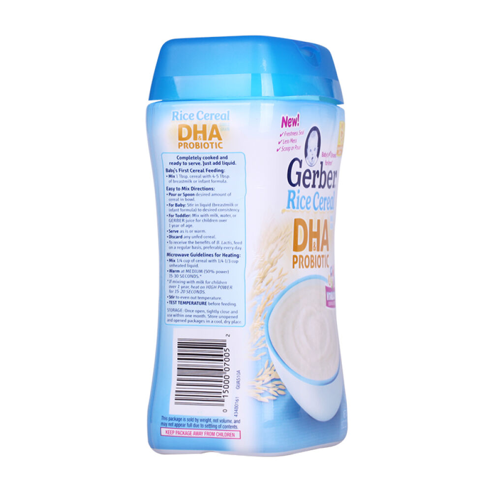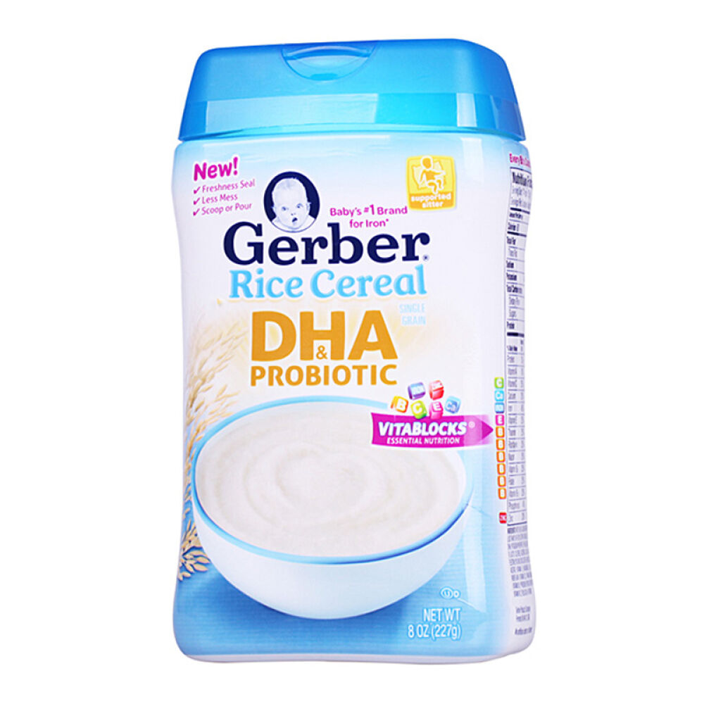 【全球购】美国嘉宝gerber营养米粉1段宝宝辅食婴儿米糊含铁4个月以上米粉227g一段大米DHA