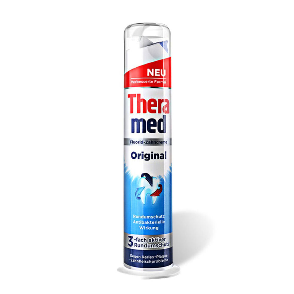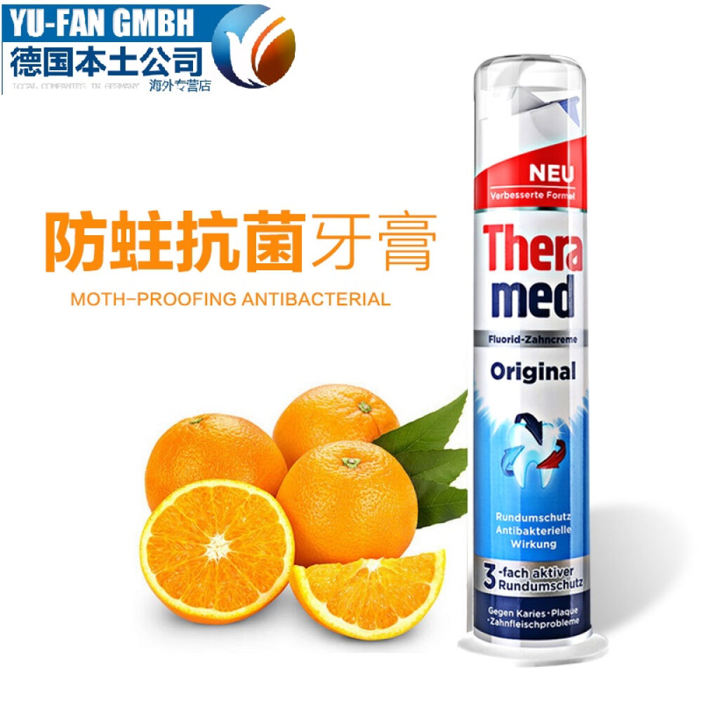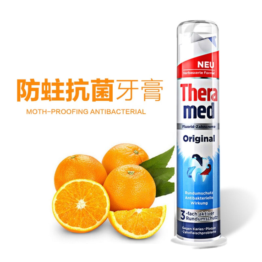德国原装进口施华蔻Theramed汉高泰瑞美站立式美白去渍去垢护齿牙膏美白三重防护抗菌固齿防蛀牙膏(蓝色)
