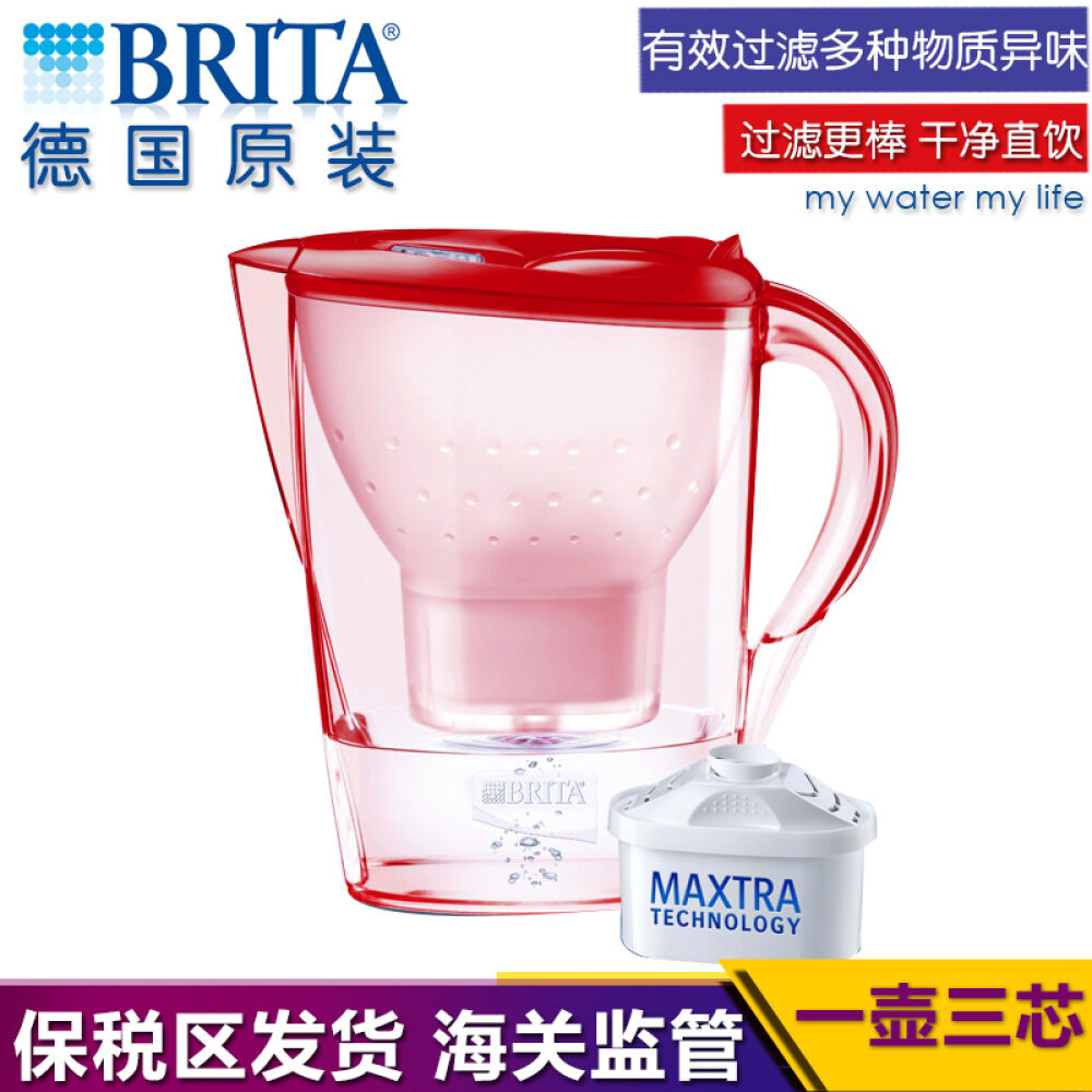 碧然德Brita滤水壶滤芯德国原装进口家用直饮净水器marella3.5L套装净水壶水杯红色一壶3芯