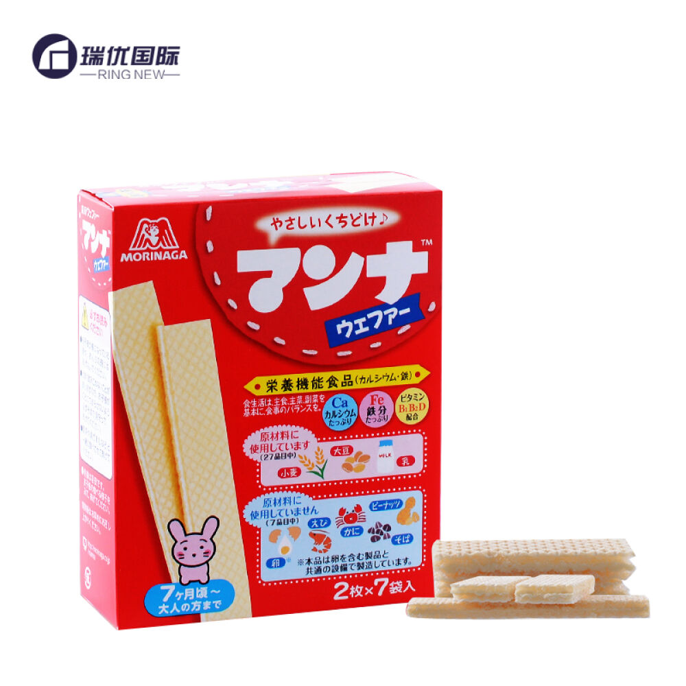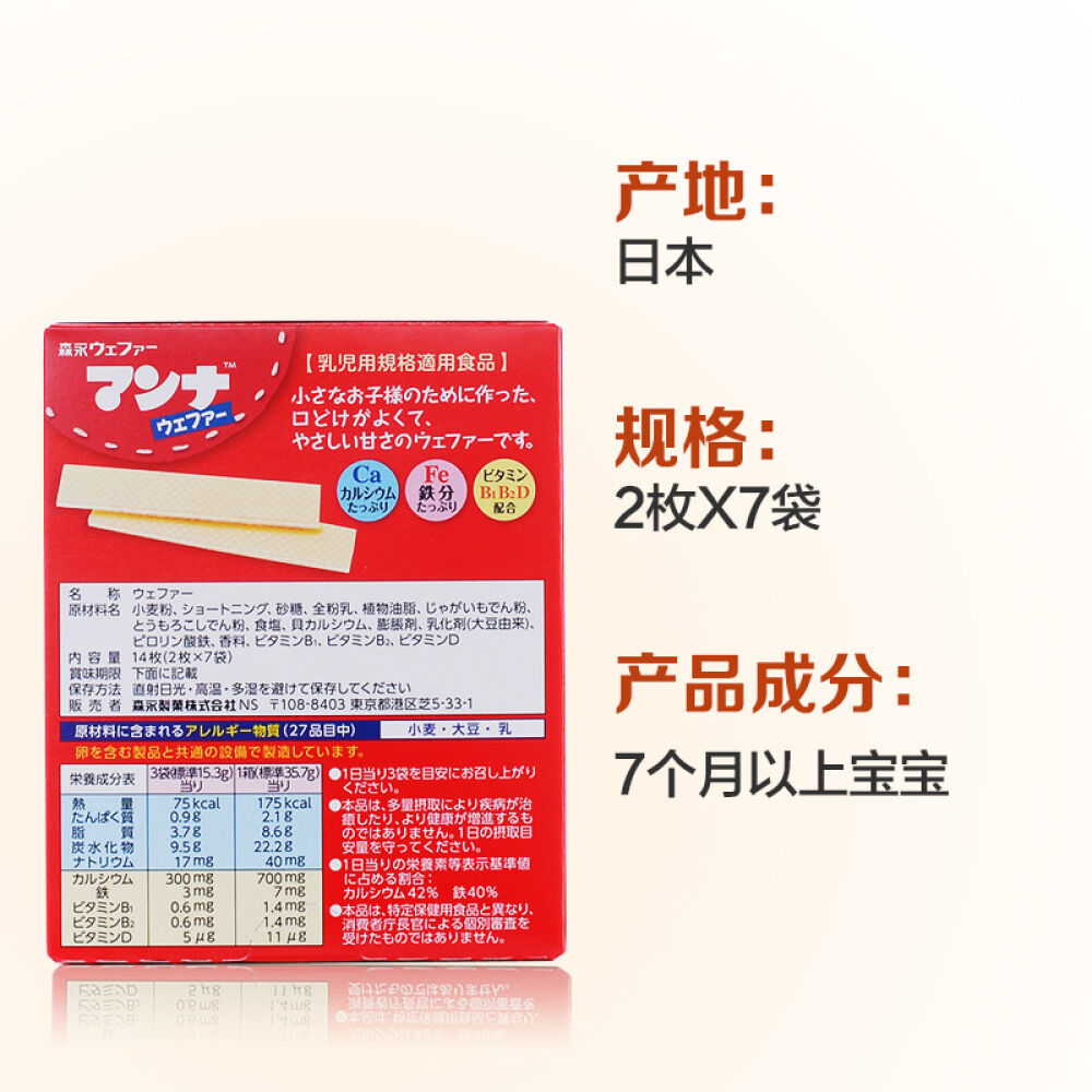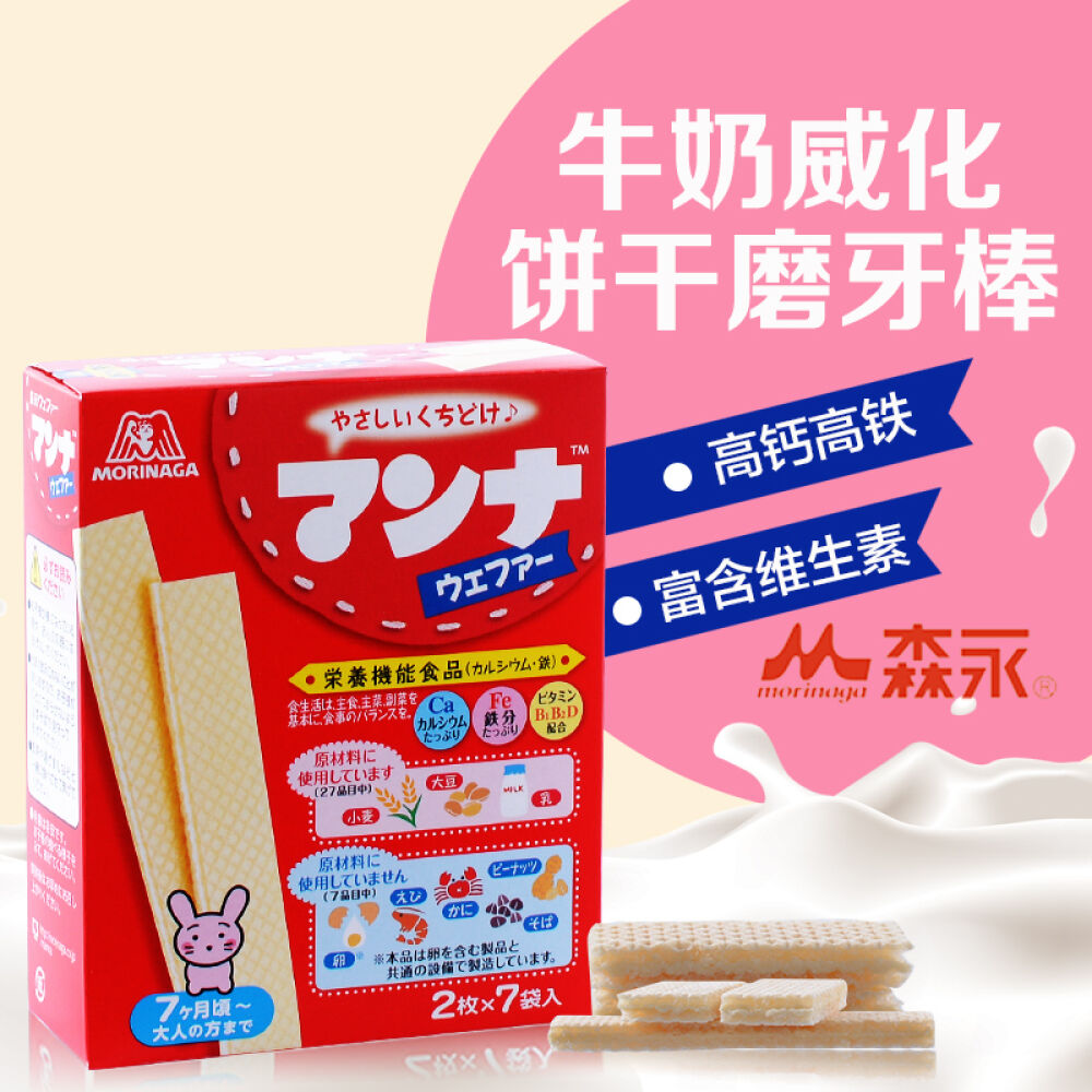 【全球购】日本进口Morinaga森永营养婴儿威化饼干儿童零食2片*7袋牛奶威化饼干