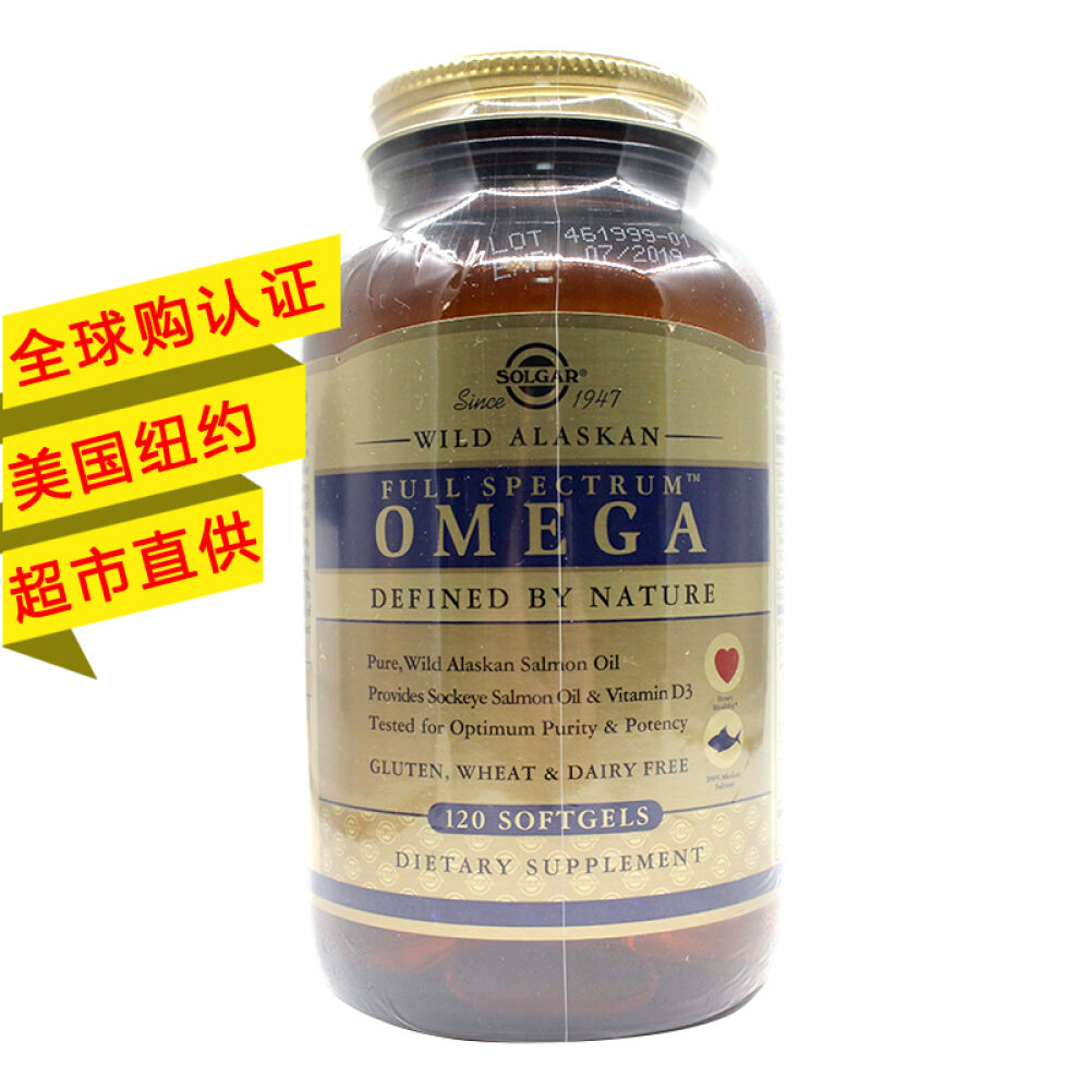 【Fit】美国直邮进口Solgar阿拉斯加深海三文鱼油中老年软胶囊1瓶
