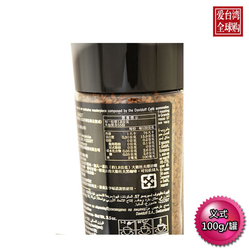 台湾地区咖啡Davidoff戴维杜夫速溶咖啡台湾地区直邮义式100g/罐