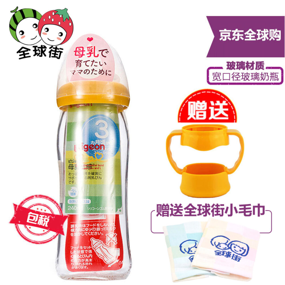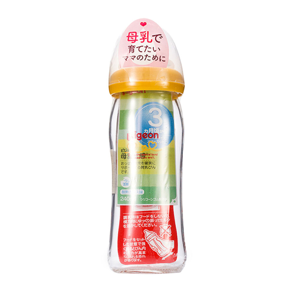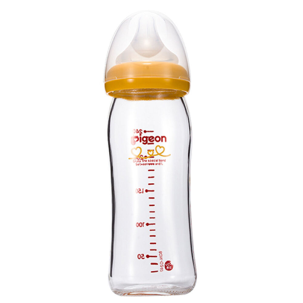日本原装进口贝亲宽口径玻璃奶瓶母乳实感防胀气耐热奶瓶240ml-黄色