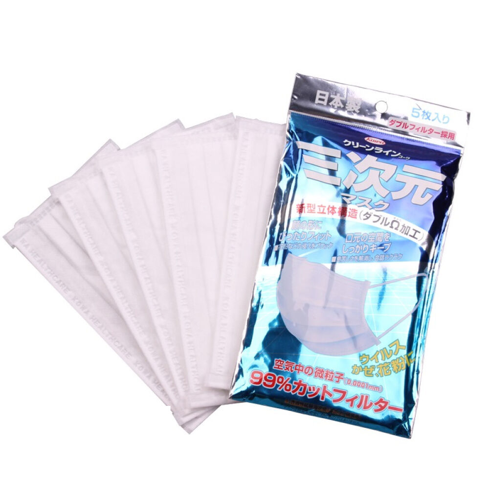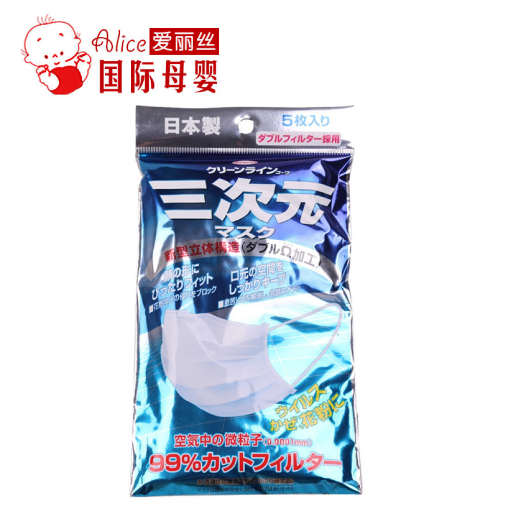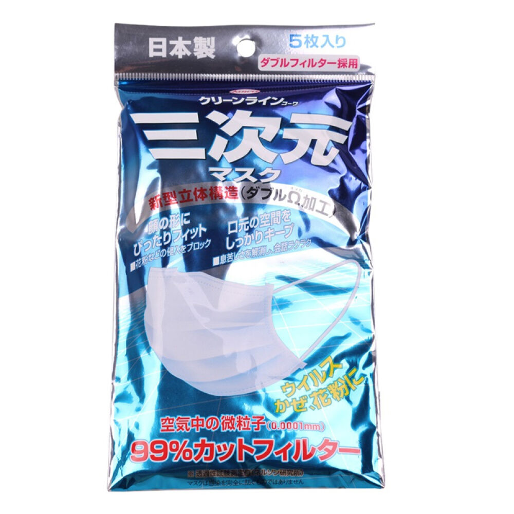 日本进口三次元口罩防PM2.5进口防雾霾防尘防雾霾口罩5片男(蓝色)