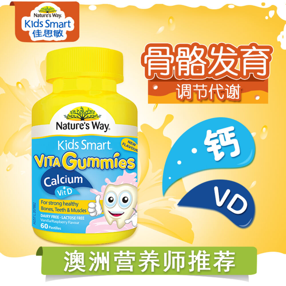 佳思敏NaturesWay儿童KidsSmart复合维生素VCVD钙软糖鱼油益生菌钙+VD软糖强健骨骼肌肉60粒/瓶