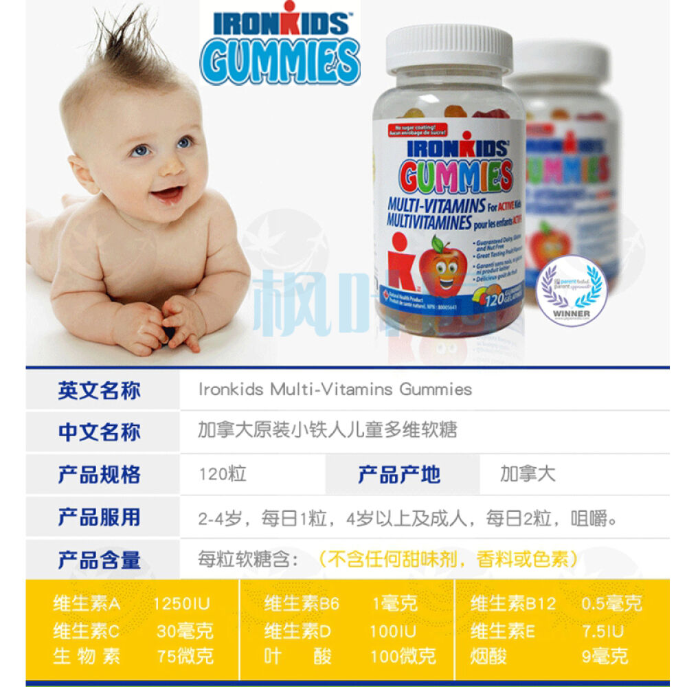 【保税仓】包邮加拿大原装Ironkids小铁人多维矿物质软糖水果味两岁以上120粒